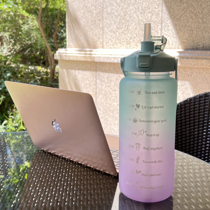 1L & 2L Large Capacity Bottle Sports Water Bottle With Time Mark Gradient Color Plastic Outdoor Fitness Sports Bottle