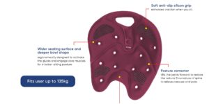 – Relieves pressure points and back pain- helps alleviate muscle fatigue resulting from extended periods of sitting