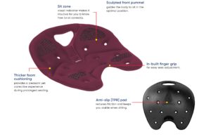 – Improves posture- tilts the pelvis forward to restore the natural S curvature of the spine for a healthy posture