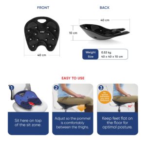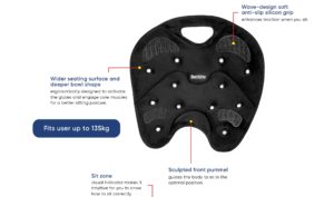 – Improves posture- tilts the pelvis forward to restore the natural S curvature of the spine for a healthy posture