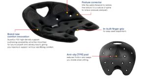 – Encourages upright position- reduces chances of slouching, especially during prolonged sitting